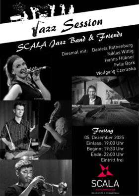 wir freuen uns euch die beliebte Veranstaltungsreihe "Jazz-Session der SCALA Jazz Band & Friends" vorzustellen.