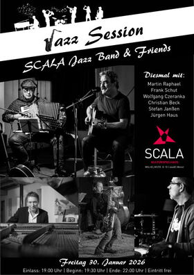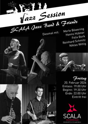 wir freuen uns die beliebte Veranstaltungsreihe "Jazz-Session der SCALA Jazz Band & Friends" auch in 2026 fortführen zu können.
