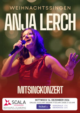 wir freuen uns euch das Mitsingkonzert WEIHNACHTSSINGEN MIT ANJA LERCH vorzustellen.